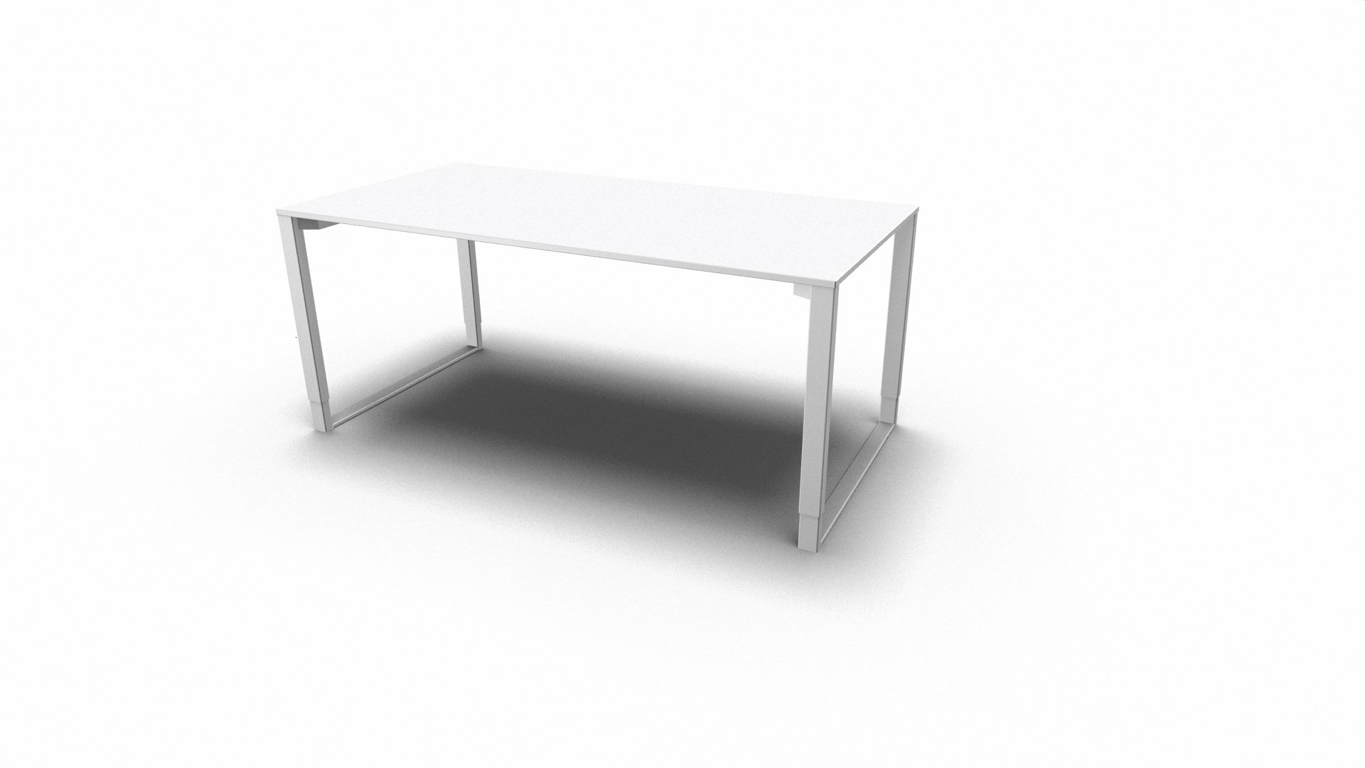 Tischplatte: lichtgrau Kunstharz / Gestell: reinweiss