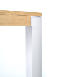 Was sich bewährt, bleibt. Der klassische 4-Fuss-Tisch beschränkt sich auf das Wesentliche. Die Tischbeine aus Aluminium lassen sich schnell in der Höhe verstellen, ohne Werkzeuge.