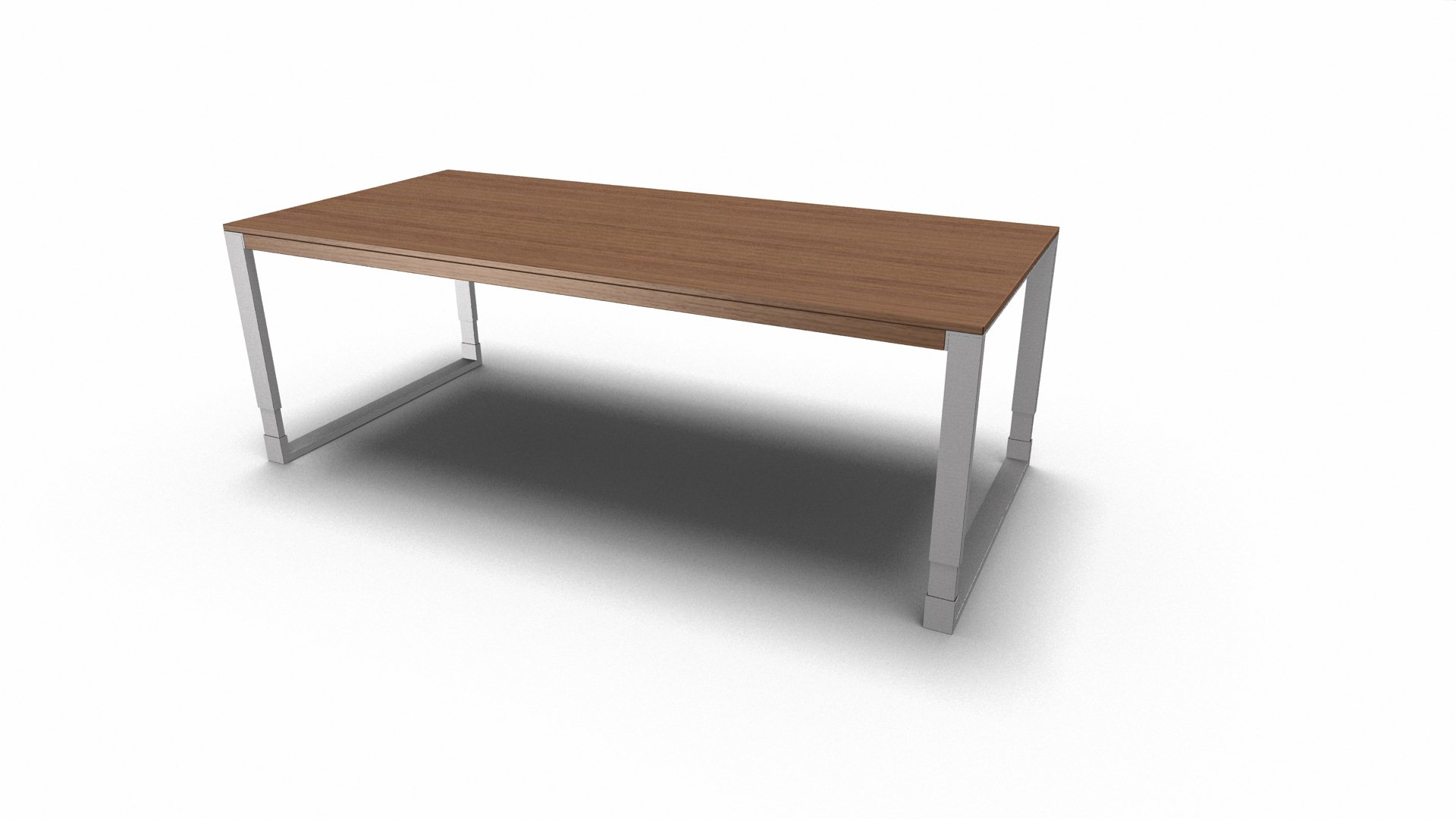 Das Kufendesign ermöglicht die Verwendung von schlankeren Aluminiumprofilen. Der Tisch wirkt reduziert und elegant.