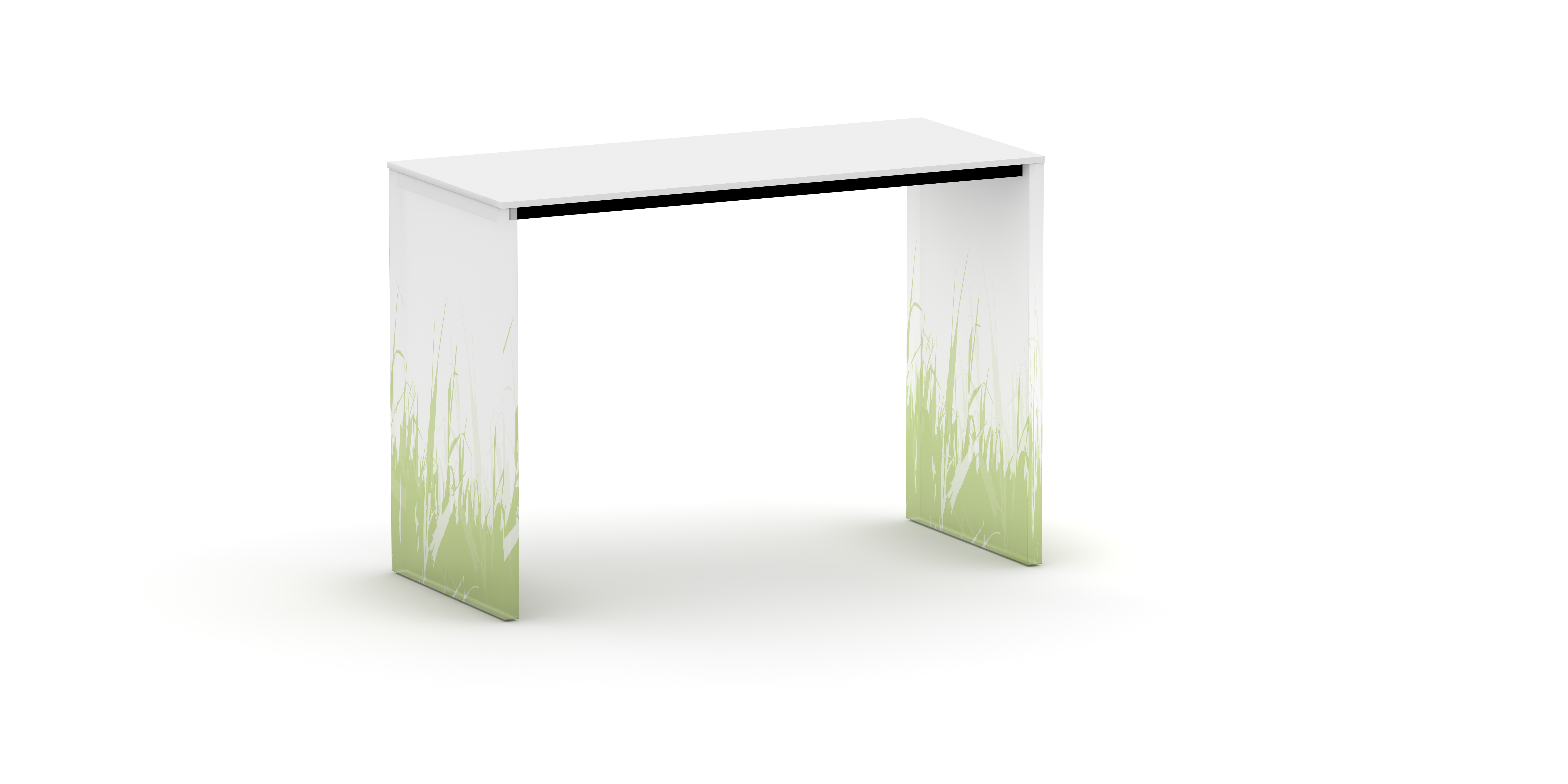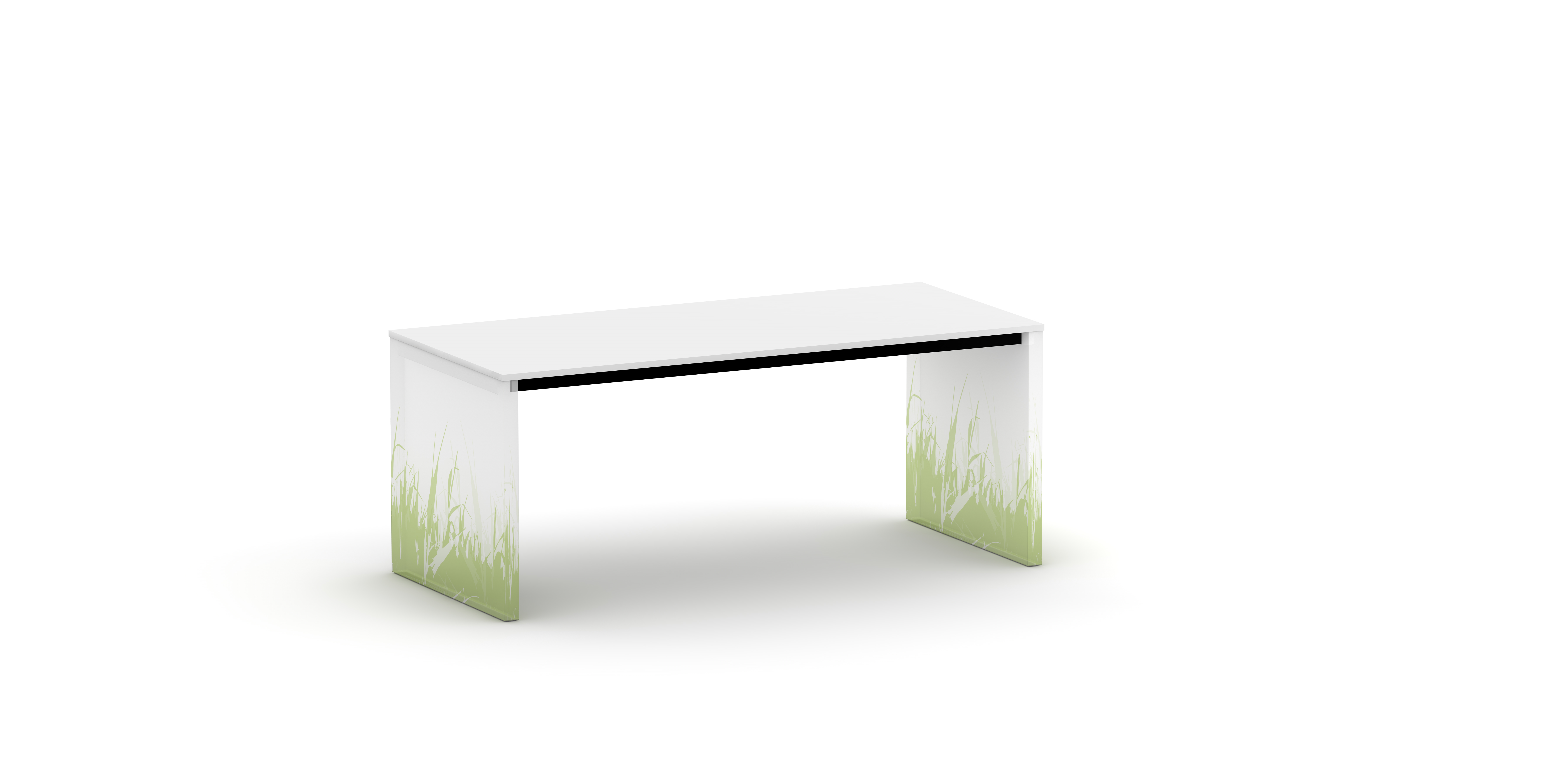 Durch die innovative Stoffbekleidung wird aus dem 4-Fusstisch optisch ein Wangentisch. Individuelle Farbgebung passt sich an CI-Konzepte an und bringt Abwechslung in den Büroalltag.