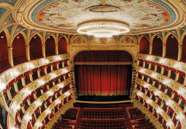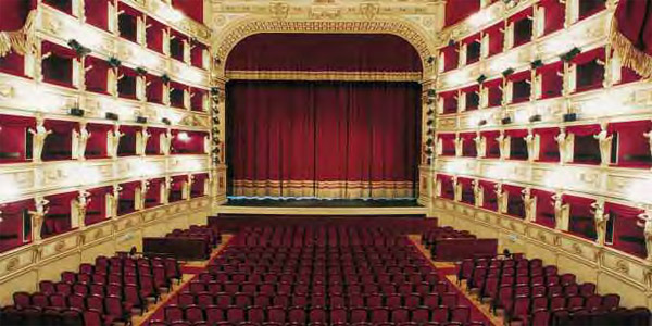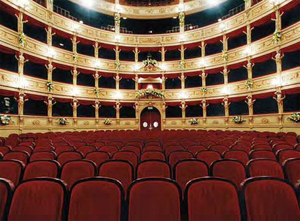 Il Teatro Verdi risale ai primi anni dell’800 ed è uno dei più antichi teatri lirici italiani ancora in attività. All’epoca della progettazione, Gian Antonio Selva aveva appena ultimato il teatro La Fenice. La pianta mostra evidentemente l’influenza del teatro alla Scala di Giuseppe Piermarini, che in questa occasione fu direttamente consultato per la definizione della struttura interna. Il teatro è stato oggetto recentemente di un lavoro di restauro radicale, consolidamento strutturale e adeguamento alle norme. |