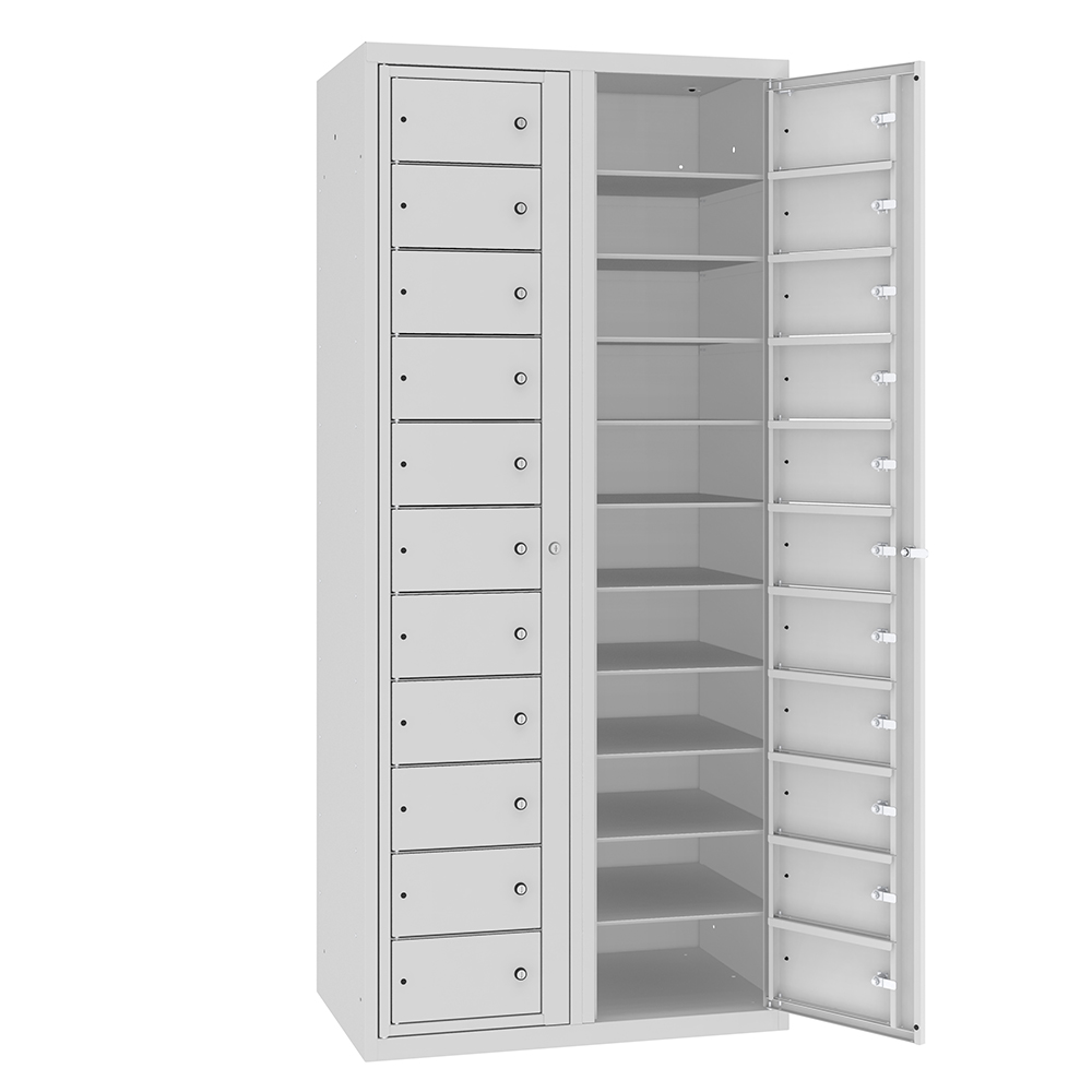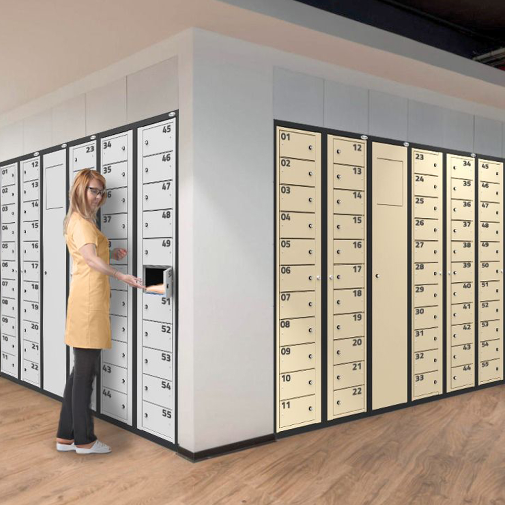 MKB lockers are very practical utility lockers used, among other things, for the distribution of health and safety articles, picking up clean clothes and returning dirty ones. Each locker is locked with an independent key and the common frame makes it possible to open all lockers at the same time.